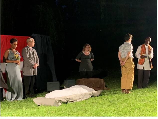 Enjoy! From: "Kelley, Craig" <ckelley@cambridgema.gov> Date: Monday, July 8, 2019 at 12:47 AM Subject: Corrected Shakespeare's Hamlet- this coming weekend at Danehy, following two at Longfellow Park (off of Mt. Auburn) Hey Everyone: You’d think that after 10 zillion dollars’ worth of higher education, I’d be able to read dates properly, but it turns out I am flawed in that regard so please excuse this correction. Hamlet will play again at Danehy Park this coming weekend, Thursday-Sunday, 11-14 July, at Danehy Park near the Sherman Street entrance. Hope and I saw it Friday night and it was fantastic. There are all sorts of lines I recognized, but I would have been wise to read a recap of the plot beforehand. Not to be a spoiler, but as you can see from the attached picture, someone dies in this play. Actually, a lot of people die in this play but I won’t tell you who. And it is also full of great advice such as “Be wary, then; best safety lies in fear.” Sounds like something my Dad told me once or twice….. We sat close to the marked off stage (ropes in the grass) on the left side as you look at the ‘stage.’ These were great seats- the show is not miked and not being too close to the playground or too far from the actors really made watching and hearing it easier, so you may want to get there early enough to sit in a similar location. We could literally see the sweat on the actors’ arms, it was that intimate a show. We brought the cute dog we are dog-sitting so we got extra attention from the actors, which was fun. Don’t forget the blanket and picnic fixings.