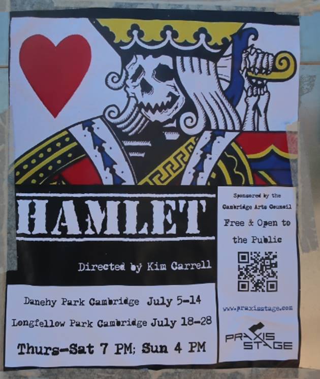 Corrected Shakespeare's Hamlet- this coming weekend at Danehy, following two at Longfellow Park (off of Mt. Auburn)